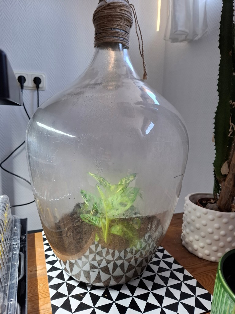 Skrivandet om slutna system fortgår i takt med att växterna rotar sig (bilden är tagen två veckor in i experimentet). Det är något fascinerande med sådana slutna världar som på samma gång är en tidskapsel men också ett system under konstant utveckling. Att det till slut fallerar är det troliga utfallet även om liknande system har hållit många årtionden.